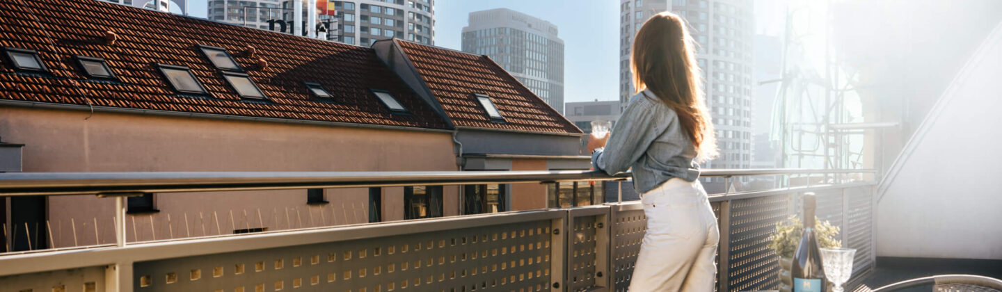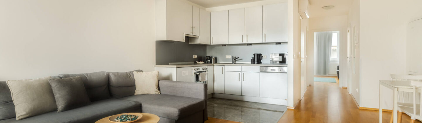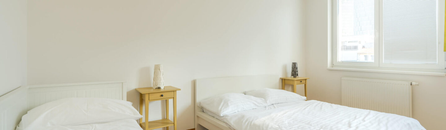 Deluxe airy 2-bedroom apartment with a spacious terrace of 15m2 offering views onto the lovely neighbourhood. The almost 100m2 floor-plan offers two separate bedrooms and one large open space, connecting living room area, kitchen and dining area. Thanks to its spaciousness, the apartment provides ultimate comfort for both, business purpose or vacation with your dear […]